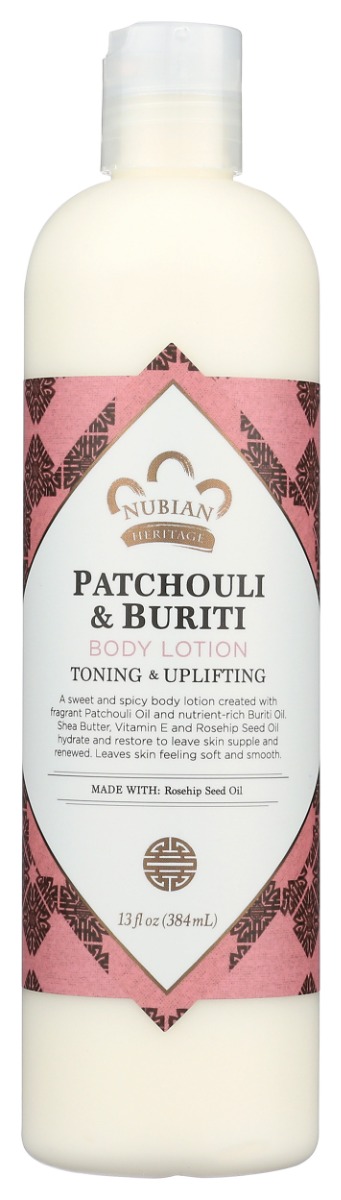 Rich in skin-loving nutrients, our luxurious patchouli lotion brings an earthy, spice aroma to your skin care regimen as it deeply hydrates for skin that’s supple, smooth and renewed. Buriti oil is made from the fruit of the buriti palm tree, a native of many South American countries. For centuries, this “tree of life” has been revered in traditional healing for its power to protect and rejuvenate the skin. We add the elixir to our certified organic shea butter, cocoa butter and aloe bath and body recipe for deep-down, all-day moisturization. Then we add essential oils of spicy patchouli perfume for an exotic aromatherapy experience.