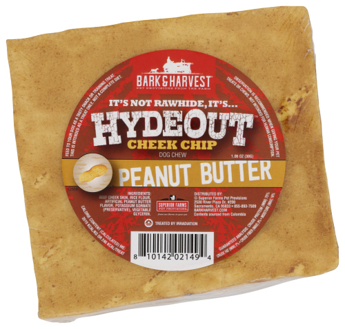 A worry-free alternative to the old rawhide treats these cheek chips are basted in a tasty Peanut Butter flavor your dog is going to love. This HydeOut Peanut Butter Cheek Chip is a treats derived from beef “cheek” (skin above the neck) which are slightly different than traditional rawhide.