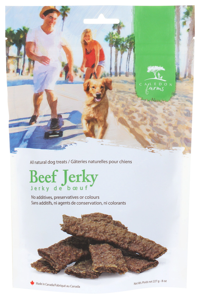 Our Beef Jerky dog treats are a healthy snack that canines go crazy for! Jerky is a treat loved by pet parents and now they can provide their best friend with these treats they love. The primary ingredient in these quality treats is Canadian beef which we use to make an irresistible snack that’s rich in protein and has a chewy texture. Most importantly, our treats are all natural; containing no additives, artificial preservatives, or colours.