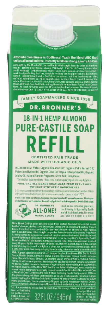 DR. BRONNER’S: Soap Refill Almond Pure, 32 fo