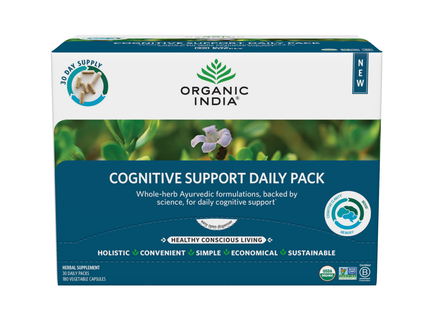 Take the guesswork out of your cognitive support supplement routine with ORGANIC INDIA Daily Packs. Each convenient Daily Pack contains six capsules consisting of whole-herb Ayurvedic formulas that nurture brain function.