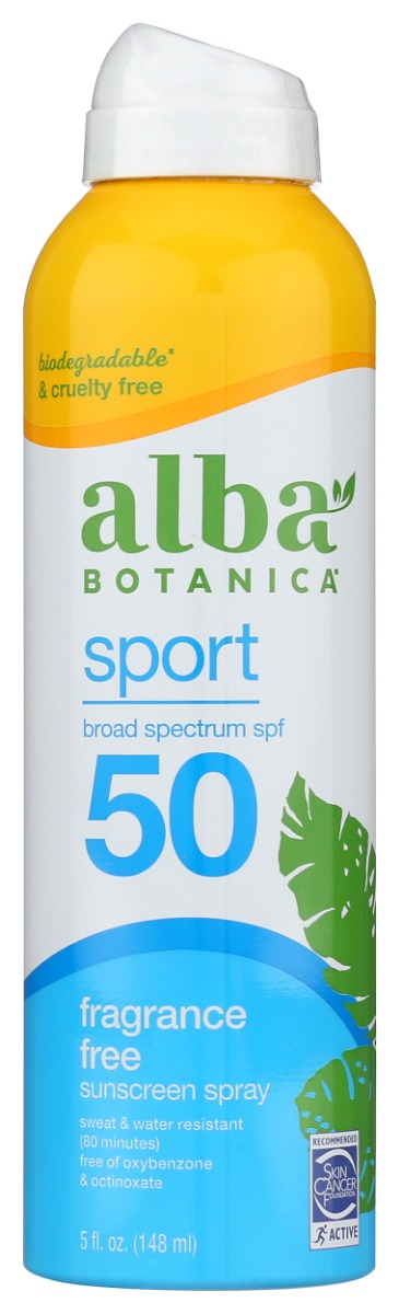 This lightweight, quick-dry mist keeps you protected and in the game. Broad spectrum sunscreen protection is easily applied with this air-powered, earth-friendly mist that can be sprayed on at any angle. Lightweight, fast drying and fragrance free, this formula helps protect against sunburn, skin cancer and premature signs of aging. Biodegradable, water resistant sunscreen spray is gluten free and recommended by the Skin Cancer Foundation. Free of oxybenzone, octinoxate, PABA, nano-sunscreens and Vitamin A. Alba Botanica® sunscreens are free of active ingredients that may harm coral reefs.