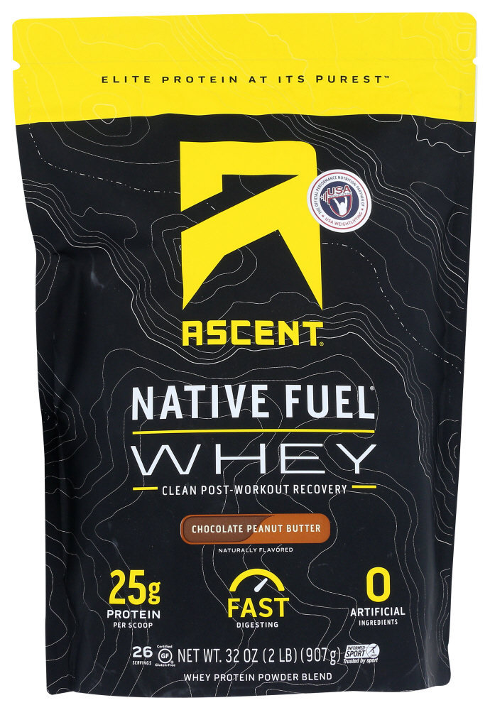 Ascent’s Native Fuel® Chocolate Peanut Butter Whey is a convenient and easy-to-mix Chocolate Peanut Butter Protein powder that was created with one purpose in mind: to help you recover after putting in the hard work. A single scoop of Ascent Chocolate Peanut Butter whey provides you with 25 grams of protein, which helps you achieve your daily protein intake as you continue to strive towards improved athletic performance. But we’re not talking about just any protein — Ascent Native Fuel is made with native whey, the least processed whey protein available on the market.