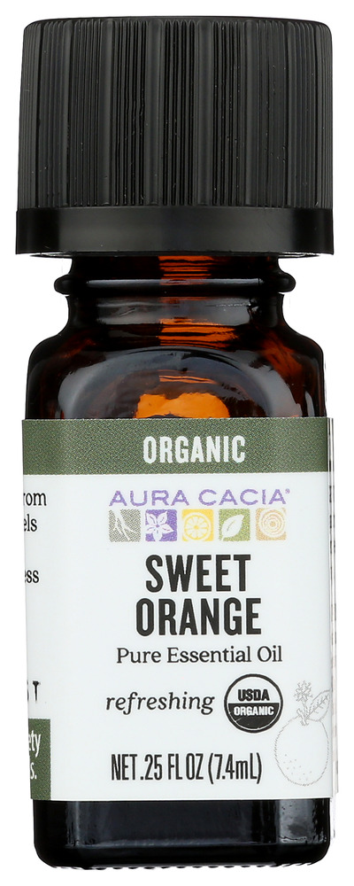 AURA CACIA: Organic Orange Sweet Essential Oil, 0.25 oz