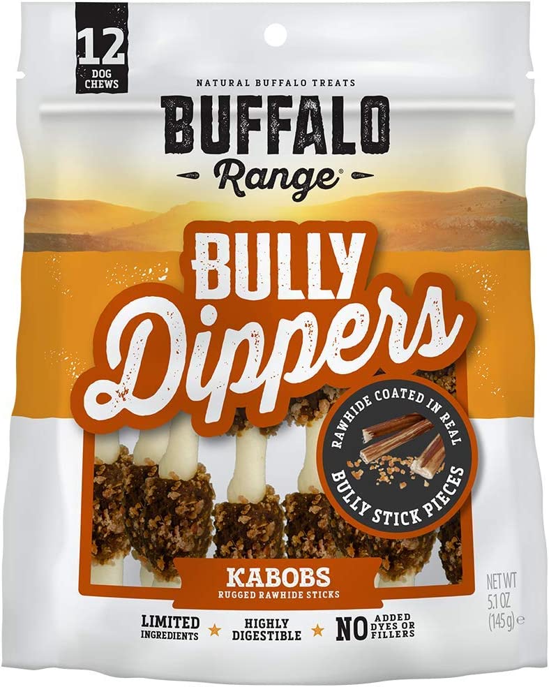 Buffalo Range Nutrition—A healthy alternative to regular rawhide bones, Bully Kabobs are made with 100% buffalo rawhide, buffalo meat, sweet potatoes and protein rich bully pieces.