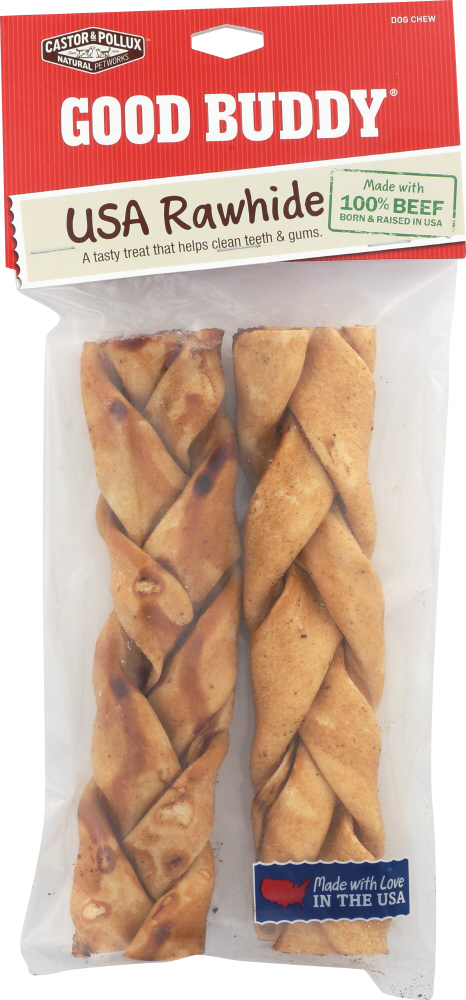 CASTOR & POLLUX: Good Buddy Braided Dog Chew Sticks Rawhide 7-8 Inches, 2 pc