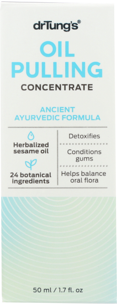 NEW! DrTung’s OIL PULLING CONCENTRATE is an Ancient Ayurvedic formula, made with 24 herbs and botanicals in an organic sesame oil base.