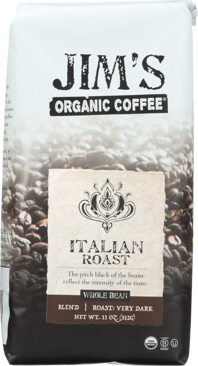 JIM’S ORGANIC COFFEE: Italian Roast Whole Bean, 11 Oz