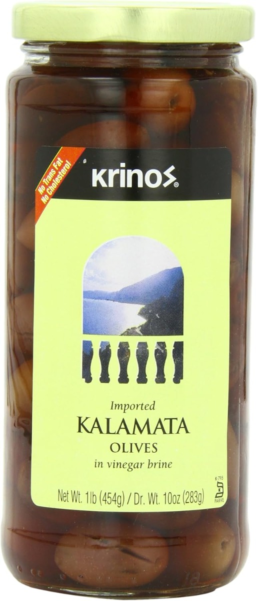 KRINOS: Imported Kalamata Olives in Vinegar Brine, 16 oz