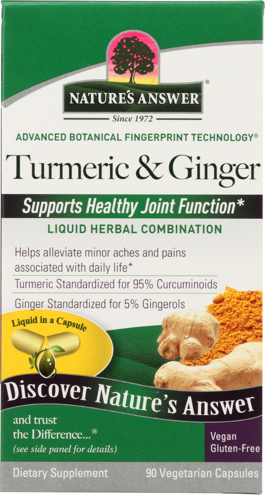 Nature’s Answer Turmeric and Ginger Liquid in Veggie Caps combines two herbs that work synergistically to provide comfort support. * Nature’s Answer has been offering the best herbal supplements in the Natural Health Marketplace, from Our Family to Yours since 1972. We offer our Unique Bio-Chelated Cold Extraction Process, and our herbs are nonGMO, Vegan, and Gluten Free.