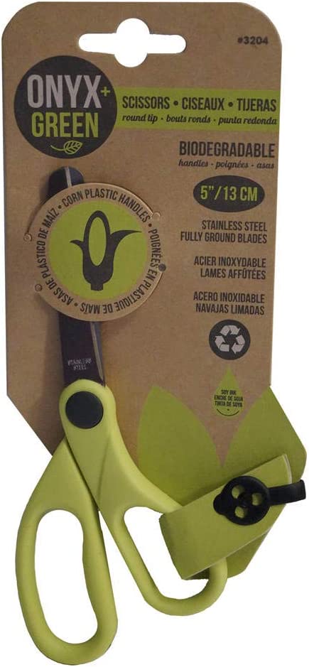 Scissors by Onyx + Green’s have stainless steel fully ground blades with round tip. The handles are made from corn plastic and they’re biodegradable! WOW who would of thought?