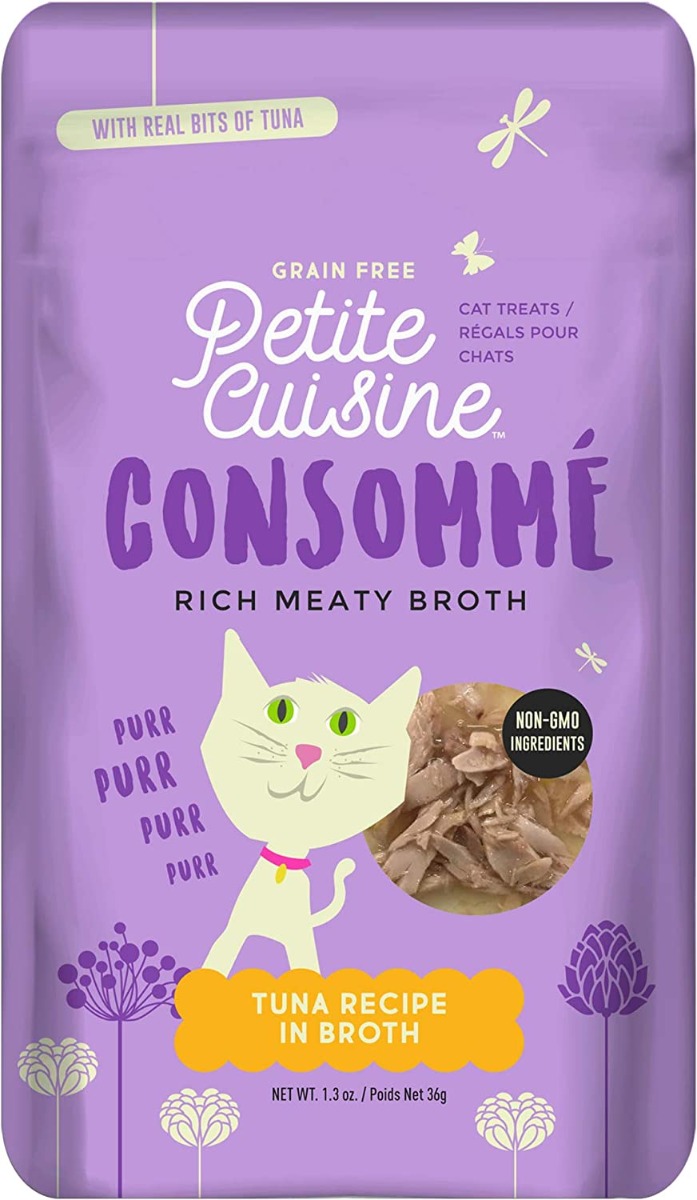 This delicious, meaty consommé has real bits of tuna to entice the most discerning feline taste buds. Add moisture to your cat’s diet by topping dry food or serving alone as a treat anytime!