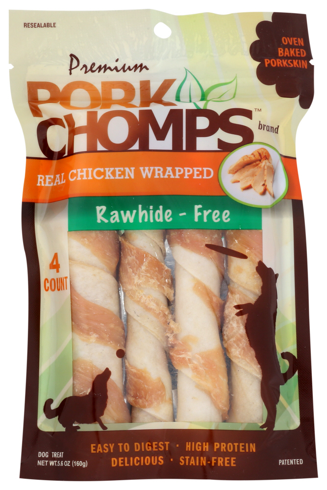 PORK CHOMPS: Premium Large Real Chicken Wrapped Twists Dog Treat, 4 ea