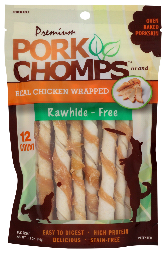 PORK CHOMPS: Premium Mini Real Chicken Wrapped Twists Dog Treat, 12 ea