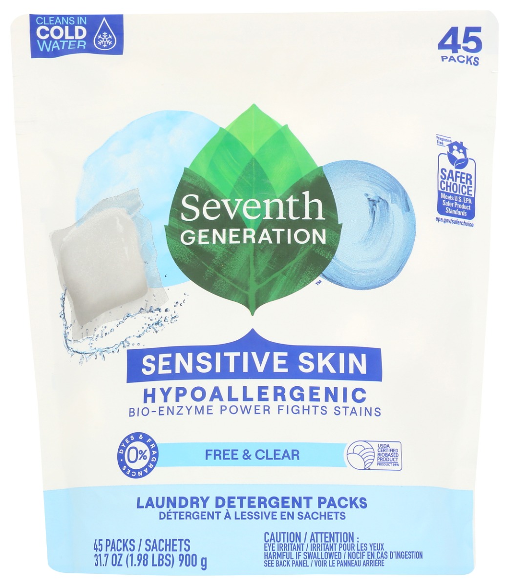 SEVENTH GENERATION: Laundry Detergent Packs Free & Clear, 45 pc