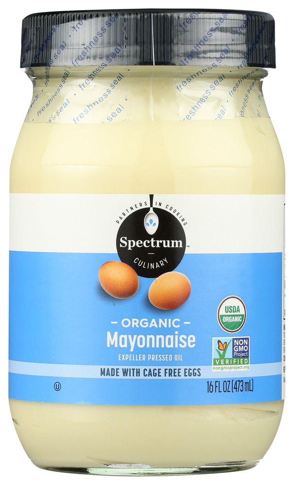 Spectrum® brand Organic Mayonnaise with Cage Free Eggs is smooth, delicious, and made with eggs exclusively from hens raised in a cage-free environment. Try it on roasted turkey sandwiches, on BLTs, or in your favorite veggie dip.
