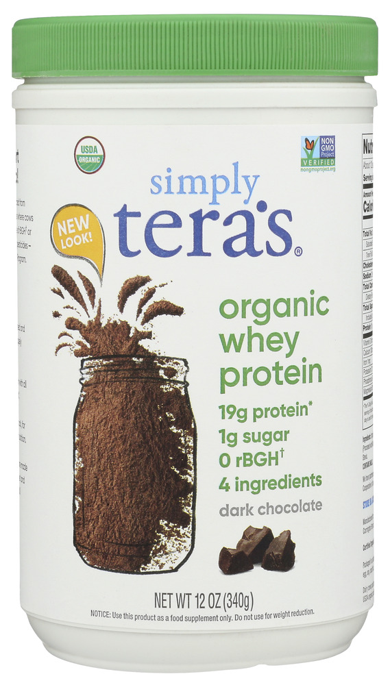 TERA’S WHEY: Grass Fed Organic Whey Protein Fair Trade Dark Chocolate, 12 oz
