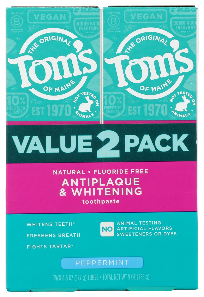 TOMS OF MAINE: Fluoride Free Antiplaque and Whitening Toothpaste Peppermint 2Pk, 9 oz
