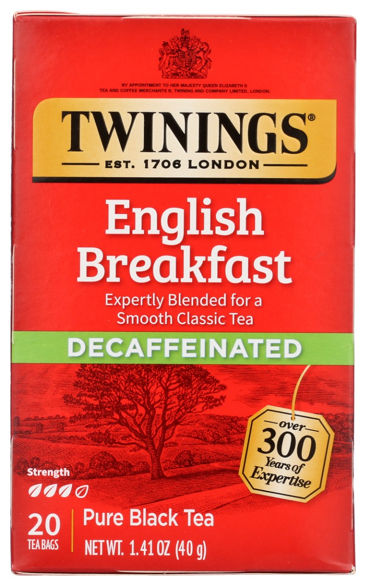 TWININGS OF LONDON: Classics English Breakfast Tea Naturally Decaffeinated, 20 Tea Bags, 1.41 oz