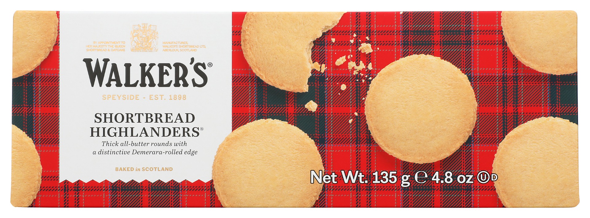 Walkers Shortbread bakes an assortment of pure shortbread, based on the same simple & buttery recipe as the homemade shortbread Joseph Walker first made in 1898, in a village in the highlands of Scotland. Walkers Shortbread Highlanders are thick, crunchy shortbread cookies with the edges hand rolled in demerara sugar. Delicious with tea or coffee, these rich cookies are flavorful from the first crumbly bite to the last.