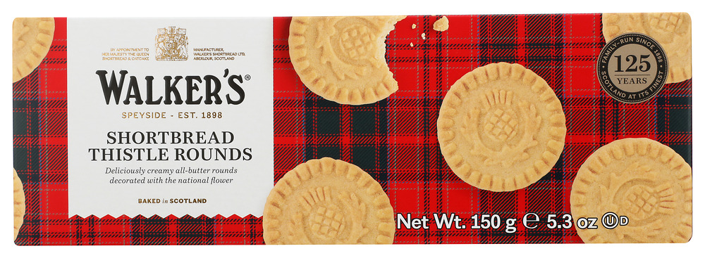 Walker’s Shortbread Rounds, adorned with the Scottish thistle and packaged in our signature red tartan box, are baked in the heart of the Scottish Highlands to our founder’s all-butter shortbread recipe which is 125 years old. Delicious on its own but also great in recipes. All Walker’s products are still baked in the village of Aberlour, in the heart of the Scottish Highlands, using only the finest ingredients, guaranteed to be free from artificial flavorings and colorings. Suitable for vegetarians, and certified Kosher